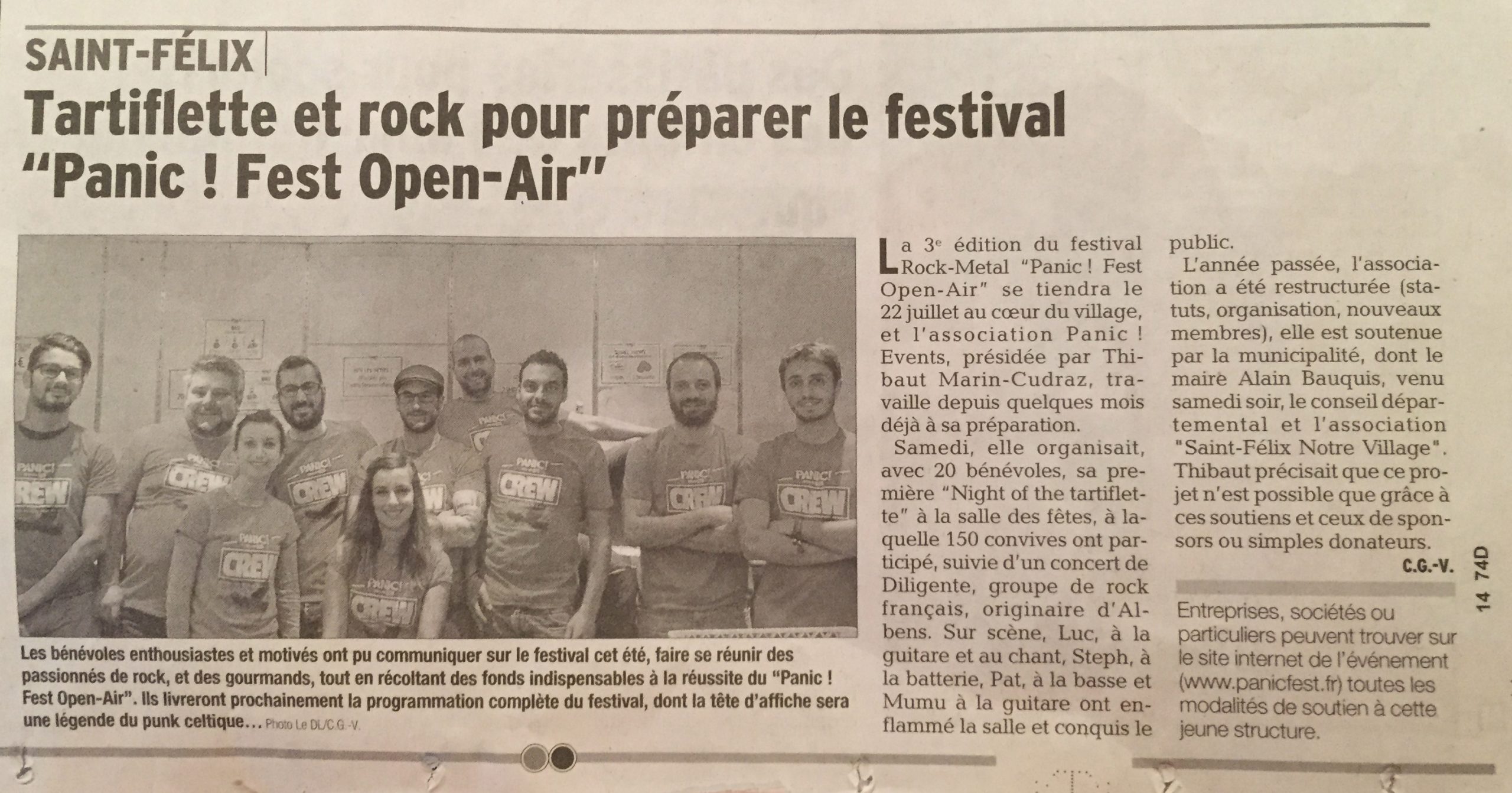 Merci au Dauphiné Libéré et à Caty Guilarmois Videlo d’avoir couvert la soirée Tartiflette ce samedi, l’occasion également de parler du festival et de sa troisième édition et de mettre en avant une partie de l’équipe de bénévoles.